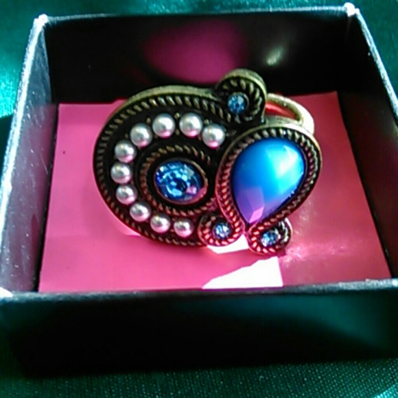 Size 10' brand new,never worn. Gorgeous ring with blue stones accented with pearls. I ordered it too big and it was a final sale, so no returns.