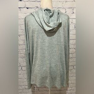 This is an Ocean Soul Long Beach Island pullover hoodie shirt in size XL. It features a solid pattern, long sleeves, a pullover closure, and is made of 95% polyester and 5% spandex fleece fabric. The hoodie is designed for women in a regular fit style and is suitable for casual occasions. It is a versatile piece for all seasons, particularly for activities like running, yoga, hiking, and more. 28 inches pit to pit and 24 to 25 inches long. Super soft material and stretchy. Smoke free home.