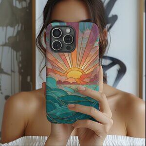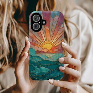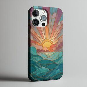 Ocean Sunrise Stained Glass IPhone 16,15,14,13 (Pro Max,Pro,Plus) Phone Case