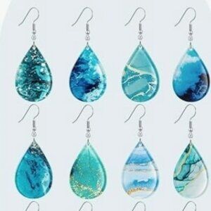 Colorful array different pairs of blue earrings for women, suitable for adding a fresh, summery touch to your outfit; These versatile accessories cater to a variety of tastes and styles. Great accessory for your summer beach look