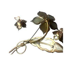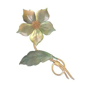 Ocean Treasure Vintage Brooch With Clip-on Earrings Mother-of-Pearl Floral Green