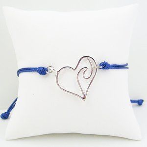 Silver Plated Ocean Wave in Heart Adjustable Bracelet. Silky Cord with Slide Size Adjustment