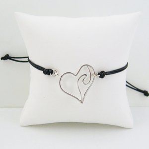 Ocean Wave Heart Bracelet Adjustable Silky Cord Black or Blue 6" to 8.5"