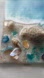 Beautiful ocean wave resin art featuring vibrant blue and white waves. Decorated with natural seashells and colorful accents.