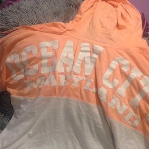 Light peach ocean city Maryland hoodie worn frequent but still good condition.