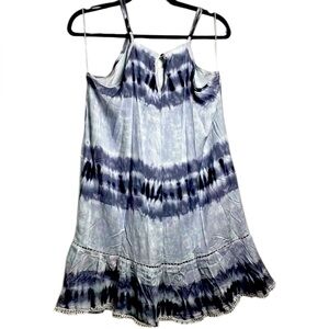 Comfy and effortless Ocean Drive swing dress in size medium. Lightweight fabric in a breezy blue and white tie dye print with crochet trim and flowy silhouette. Perfect for summer days, vacations, or as a chic beach coverup. Excellent condition.