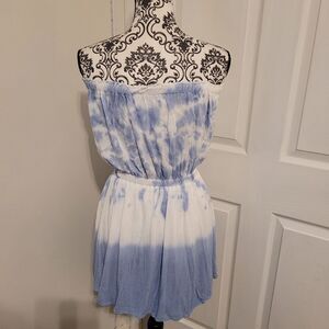Super cute dress. Great for the summer outing. Made with all rayon materials. Lined. Middle is open knitted. Tag says size medium.