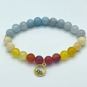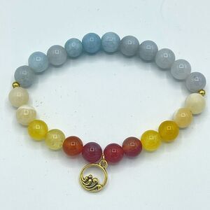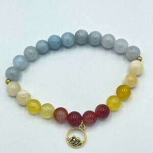 Ocean wave carnelian yellow agate honey calcite aquamarine beaded stretch bracelet ONE NEW crystal reiki