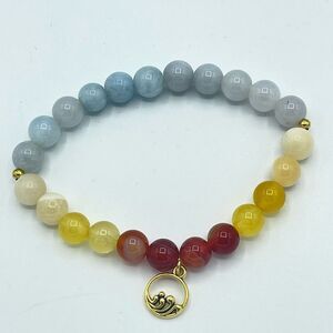 Ocean wave carnelian yellow agate honey calcite aquamarine beaded stretch bracel