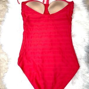 • One Piece pink / peach , halter / strapless with some ribbed details bathing suit Size 8.0 US (12 UK) on label, tap on the size converter for reference, In great condition!!