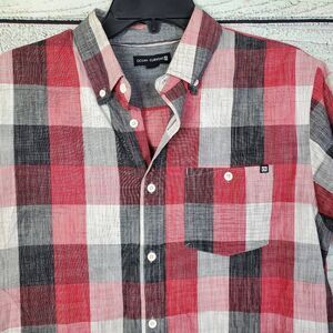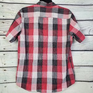 Ocean Current Men’s Button Up Shirt Medium Red Black Plaid Short Sleeve 100% Cot