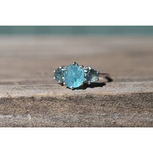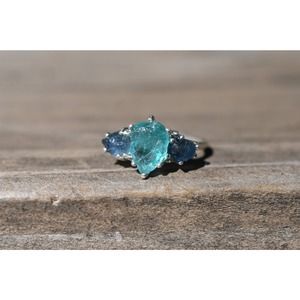 Ocean-Inspired Raw Gemstone Ring with Teal and Blue Crystals on Silver B…