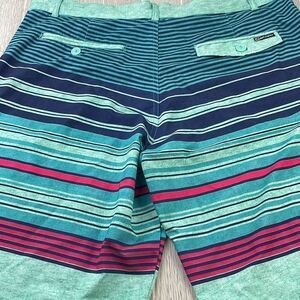 Ocean Pacific FLEX 4-way Stretch Pin Striped Board Shorts Blue Green 40