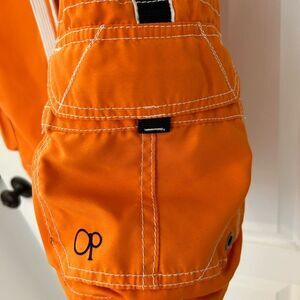 Ocean Pacific Men’s Orange Swim Trunks. Black accents. Size large. Lined with pockets.