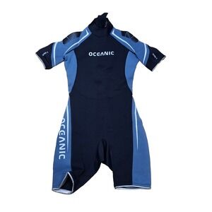 Keywords: Oceanic wetsuit, shorty wetsuit, scuba diving wetsuit, snorkeling wetsuit, swimming wetsuit, surfing wetsuit, neoprene wetsuit, dive suit, water sports gear, thermal protection, blue wetsuit, black wetsuit