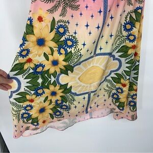 Oceanus Camille Multicolor Satin V Neck Tropical Resortwear Beach Midi Dress XL