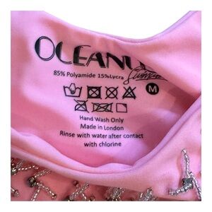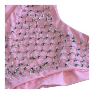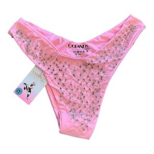 Cut for a cheeky fit, this bikini bottom from Oceanus is elevated a grid of bead and crystal embellishments covering the front for a touch of glam.