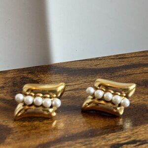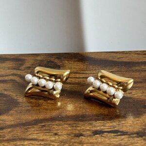 Oceanus Imitation Pearl Gold Stainless Steel Stud Earrings Timeless Sculptural