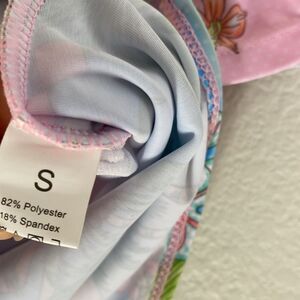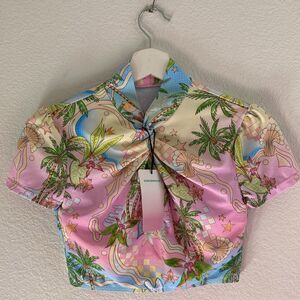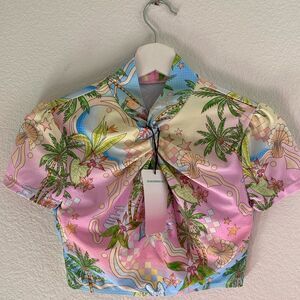 Oceanus Short Sleeve Palm Tree Mermaid Pastel Swim Top Small
