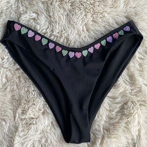 Oceanus Tina Beaded Heart Embroidered Black Bikini Bottoms