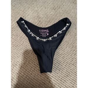 Oceanus Women's Hand Embroidered Black Embellished Bikini Bottom Size S