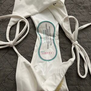 Oceanus x CINTA White Chakra Full Bikini M Hand Beaded Off-Shoulder Swimwear NWT