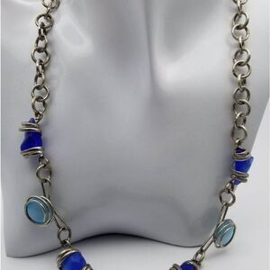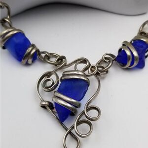 Ocean waves cerulean shard gems sterling silver swirl necklace