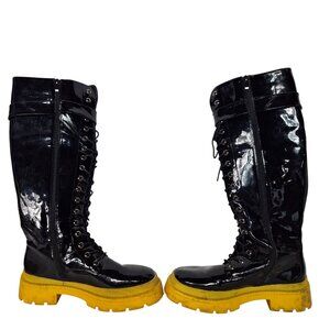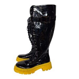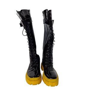 Ocho Toros Black Patent Leather Lace Up Platform Boots Yellow Soles Gothic 7.5 M