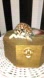 Wooden octagon shaped trinket box is painted matte gold