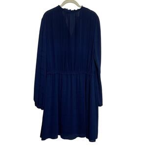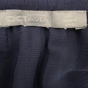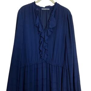 Octavia Women's Sheer Lined Fit & Flare Dress Size XL Navy Blue Ruffled Career
