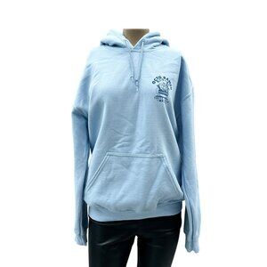 This medium blue hoodie features a unique Octo Ramen Tokyo Japan graphic print. Made from a cotton-polyester blend, it offers a soft, comfortable feel with a classic fit for casual wear.