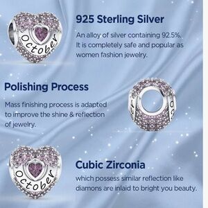 Beautiful heart charm featuring 'October' and sparkling cubic zirconia.