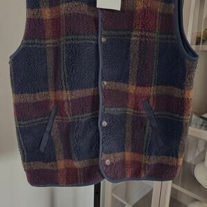 Octobre Doran Tartan Marine Bordeaux Plaid Fleece Vest M NEW Navy Red Jacket