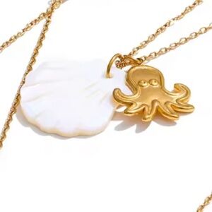 Octopus Gold White Shell 18K Gold Stainless Steel Waterproof Necklace