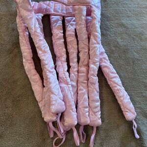 Get luscious curls overnight with the Octopus-style heatless curling tool. It's soft and squishy and comfortable to sleep in. Built in ties at the ends to fasten. your hair.
