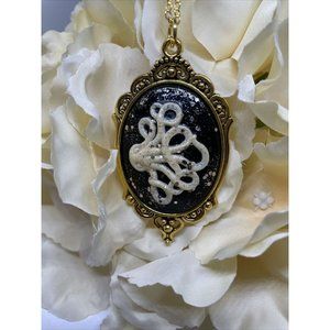 Octopus Ivory Black Cameo Gold Necklace Ocean Nautical Beach Kraken Nautical