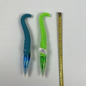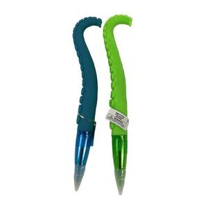 This Octopus Tentacle Shaped Pen Set is sure to add a fun touch to your home. The set includes two pens, each designed to look like an octopus tentacle with a finger puppet feature. The pens come in green and blue colors and are made of silicone material, making them durable and long-lasting.