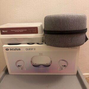 EUC Oculus 64GB with various accessories. Only used 1-2 times. Comes with everything you see in the photos. There may be some slight signs of use like smudges or dust, but no significant signs of wear, including no visible scratches on the lenses. All components were also recently sanitized. Of course, there may be something I missed, so the pictures give you an idea of the overall condition.
