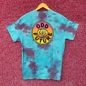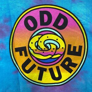 Odd Future Tie dye Donut Tshirt size Medium generally measures 20 inches pit to pit 28 inches long new overstock condition but does have markings see photos can possibly be washed off amazing rap tshirt