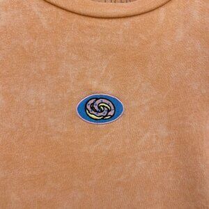 Odd Future linked donut logo embroidered T-shirt in orange/ peach. Pigment dyed so the color has a tie-dye effect. 100% cotton. Size L. Please see photos for measurements.