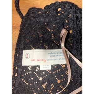 Odd Molly Anthropologie Black Knit Dress Long Sleeve Size 2 Crochet Detail BOHO