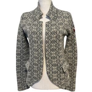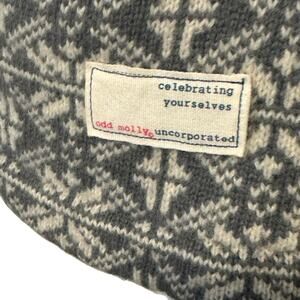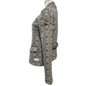 Odd Molly Knit Blazer Sweater Jacket Nordic Print Embroidered Gray White 6