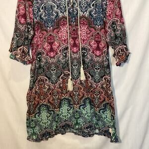 Odd Molly Patterned Ruffle Peasant Colorful Tunic Dress Size 3/4