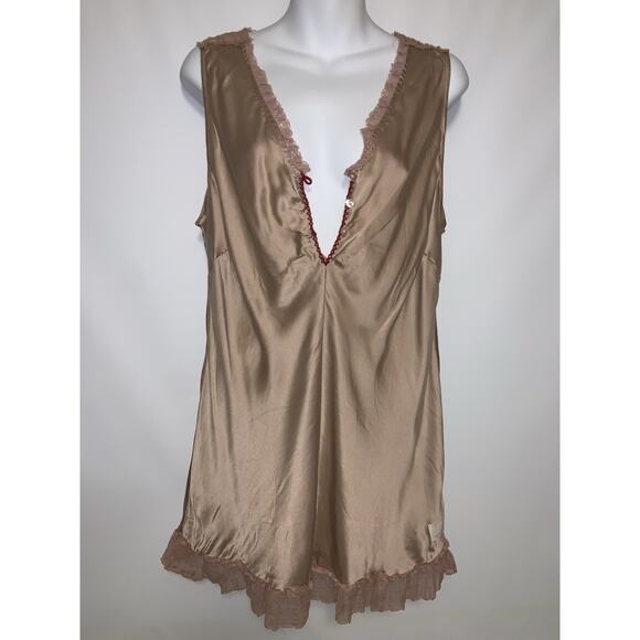 Odd Molly Silk Light Brown Sleeveless V-Neck Silk Blouse Top Tunic Size 4