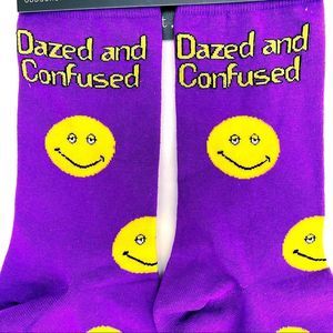 • Purple socks - yellow face logos all over - “Dazed and Confused” at top