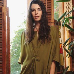 Rüya, meaning 'dream' in Turkish, this unique Oddbird silhouette lives up to its name. A truly chic, innovative, and comfortable House Dress created with versatility and endless transitionability in mind! A nod to evening and cocktail-wear, our Olive Is the perfect fabrication for lounging to a dinner date.