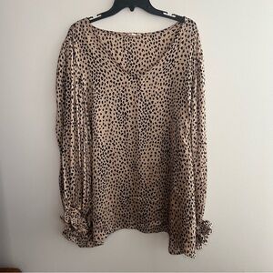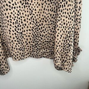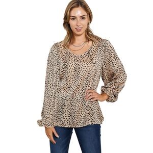 Oddi Leopard Print Pleated Long Sleeve Blouse