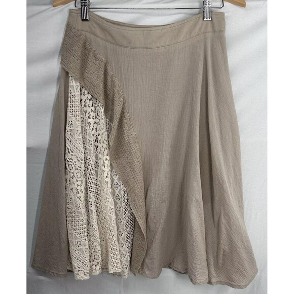 Oddy 100% Cotton Skirt Beige Lace Accent Womens Medium Boutique Boho Tea Length