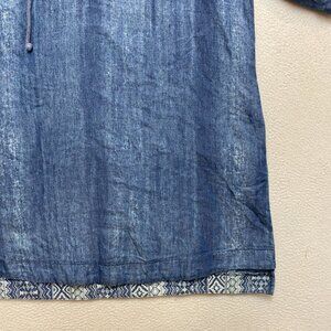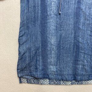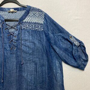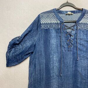 Oddy Chambray Dress Womens 1XL Blue Roll Tab Aztec Lace Up