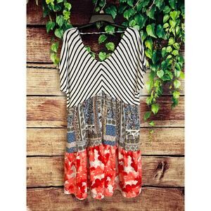 Oddy Colorblock Tier Tunic Dress Floral Stripe Patchwork Easter 4th of July 2X